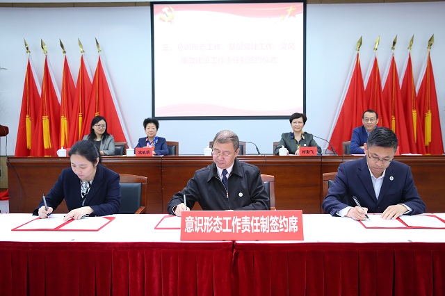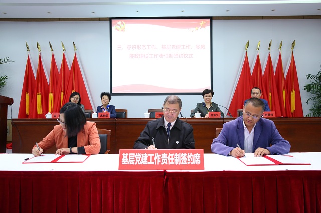 为加强学校领导班子成员的主体责任意识,建立健全压力层层传递、责任层层落实、工作层层到位的工作机制,大会举行了签约仪式,刘宇陆、柯勤飞分别与校领导班子其他成员、机关职能部门、学院代表签署了意识形态工作责任制、基层党建工作责任制、党风廉政建设工作责任制责任书。